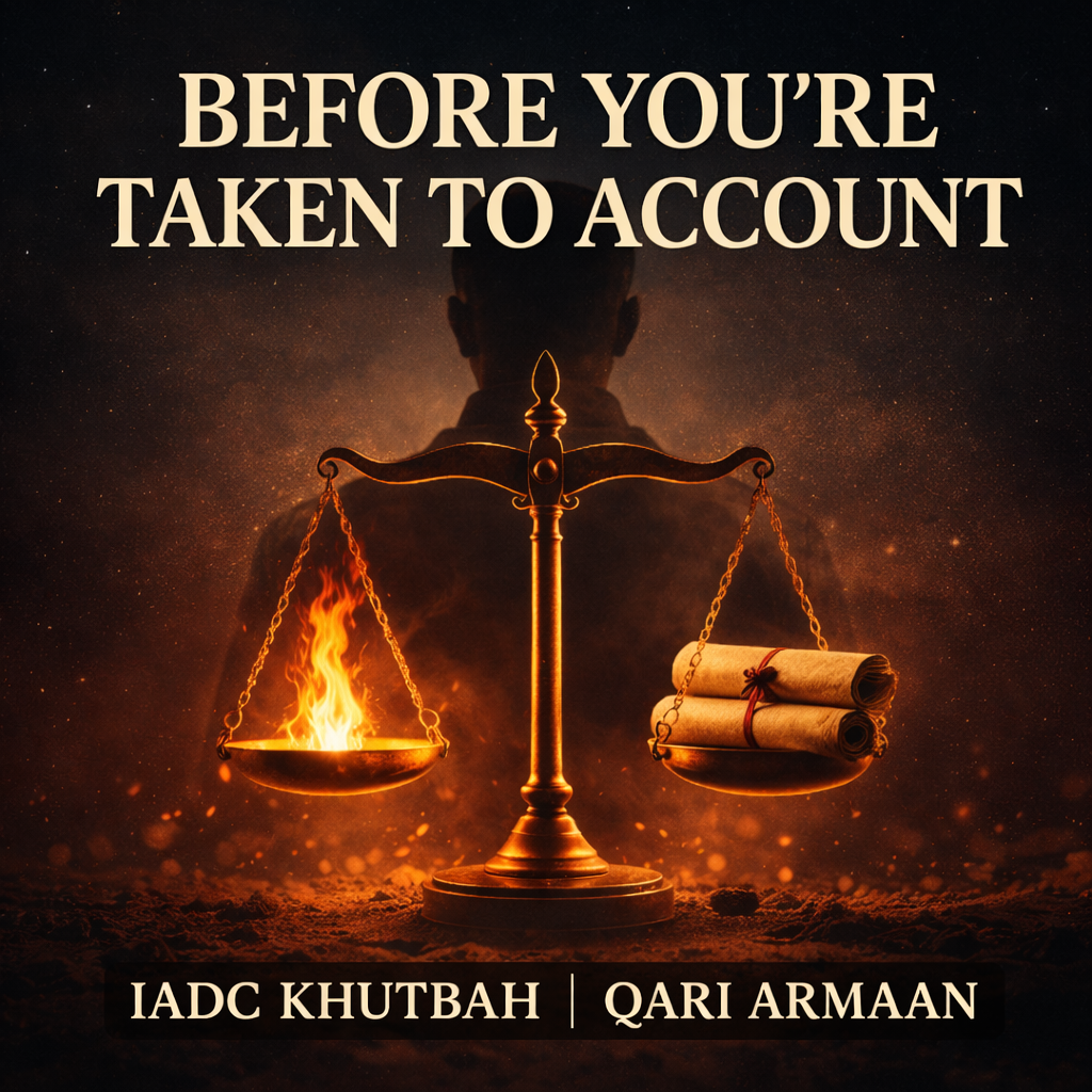 Before You’re Taken to Account 🕌 Khuṭbah Date: 16th January 2026 🎙️ Speaker: Qari Armaan 📍 Location: Islamic Academy & Dawah Centre (IADC) Action Points *Alter the time and dates according to when you’re free in your calendar Take time this week to reflect honestly on one mistake or shortcoming without excuses. Avoid blaming circumstances, […]
